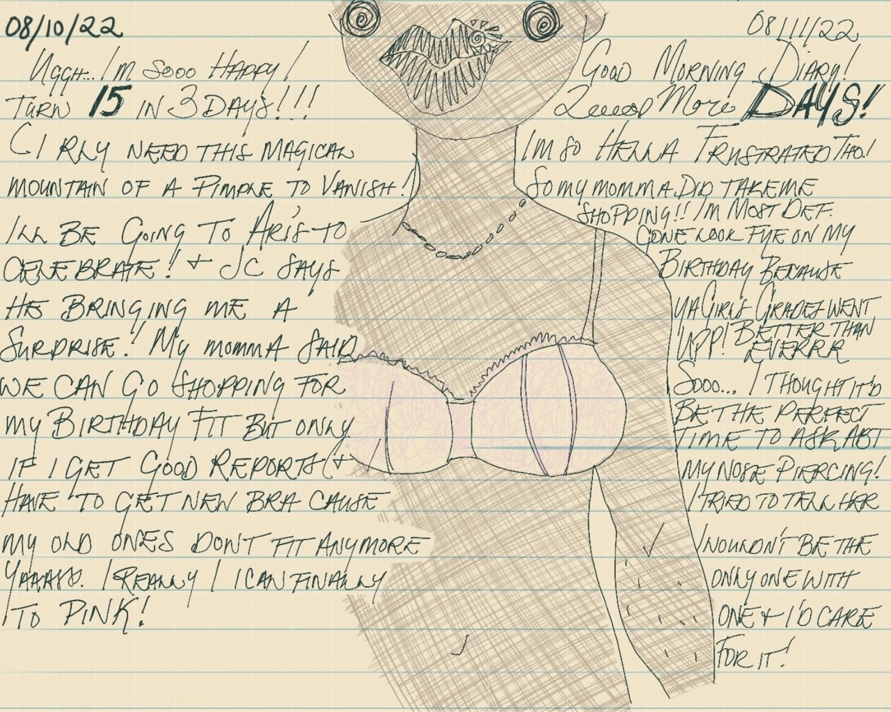 An informative educational zine used to give an intimate view on the life of a 15 year old. We were asked to describe all form of development from social to physical. I wanted to be sure to create a piece that was similar to that of a diary entry.